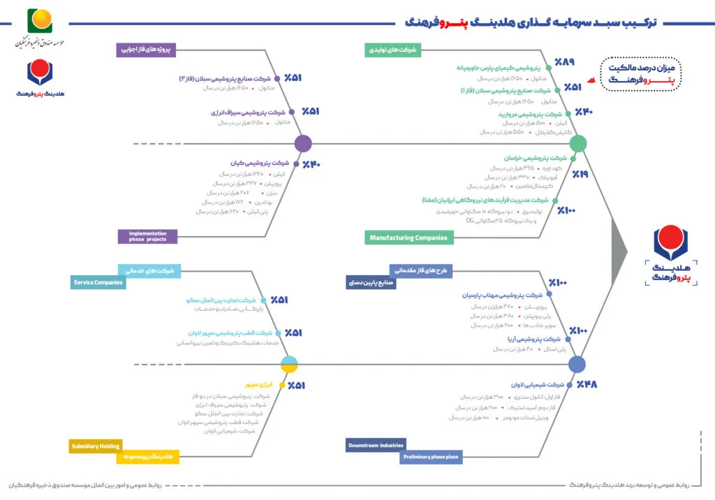 With the aim of monitoring and strategically managing the portfolio of its subsidiary companies, Petrofarhang is organized in a purposeful way and uses its available resources to identify new opportunities, improve the mix of investments, manage the implementation of executive plans, and monitor and manage its production and service companies.