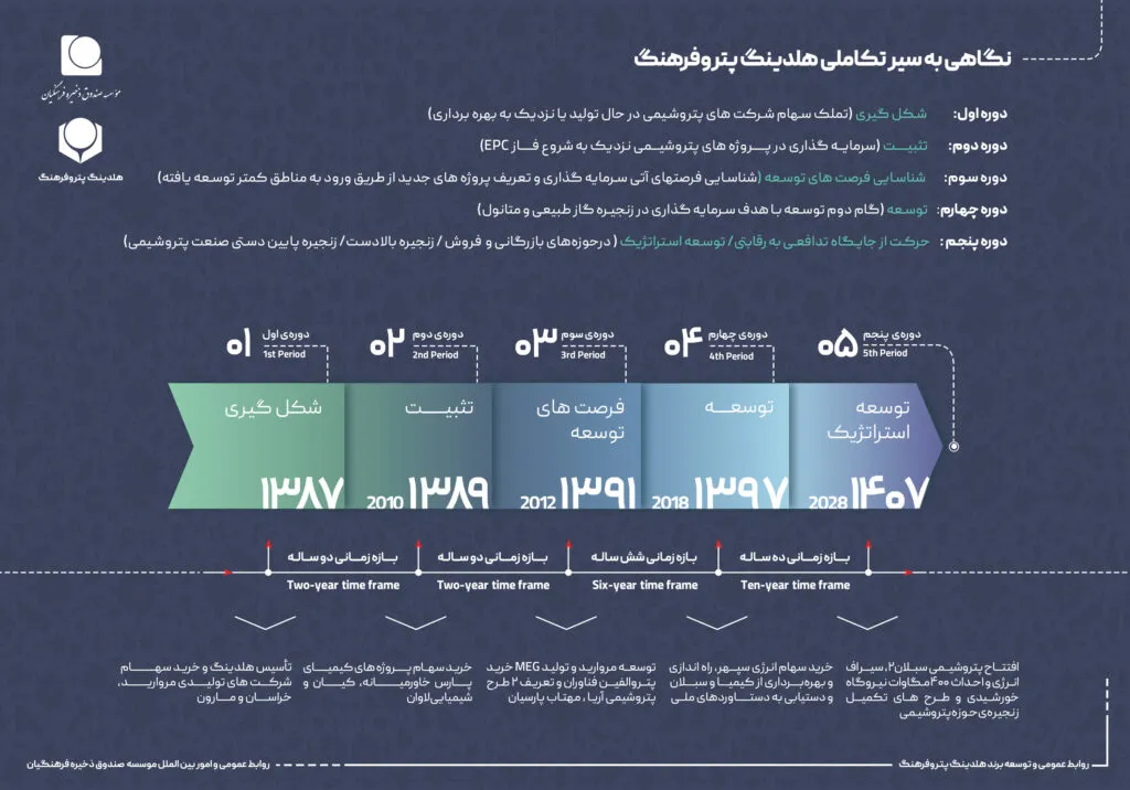 Petrofarhang was established in 2007 as the main investment arm of Farhangian Reserve Fund in the field of oil, gas, petrochemical and energy, and during its fruitful period of activity, it has been able to play an important role in attracting the participation of cultural people in the country's economic activities and industrial development. Access to cheap sources of energy and the relative advantage of the country have turned these sectors into income-generating opportunities, and based on this, the scope of the company's activities has been defined.